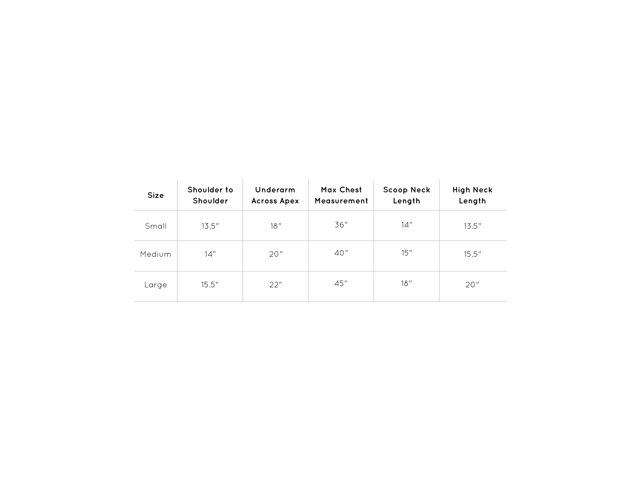 Large Size: boxy fit for larger bodies. This size features darts for a better fit for larger chests. Because of this, this size really only has ONE front, and the front and back are the same length at the hem line (unlike smaller sizes).