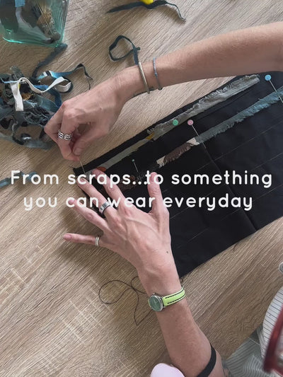 As part of our zero-waste mission, we’ve been saving the tiniest batik scraps — the little pieces most people would toss.