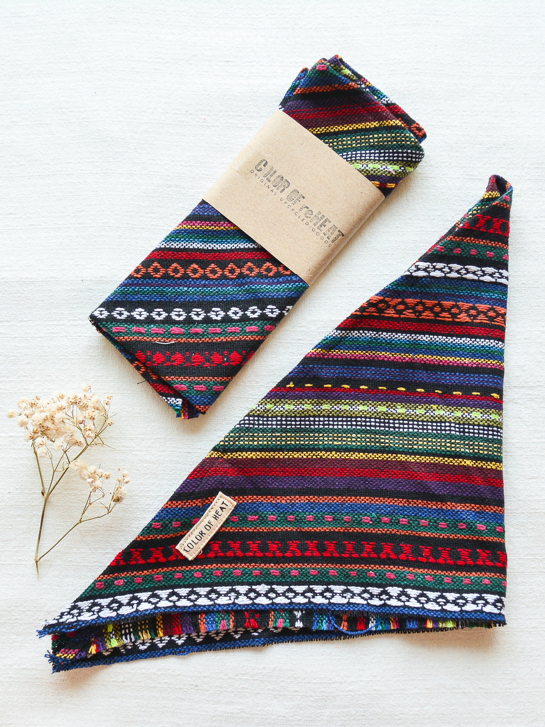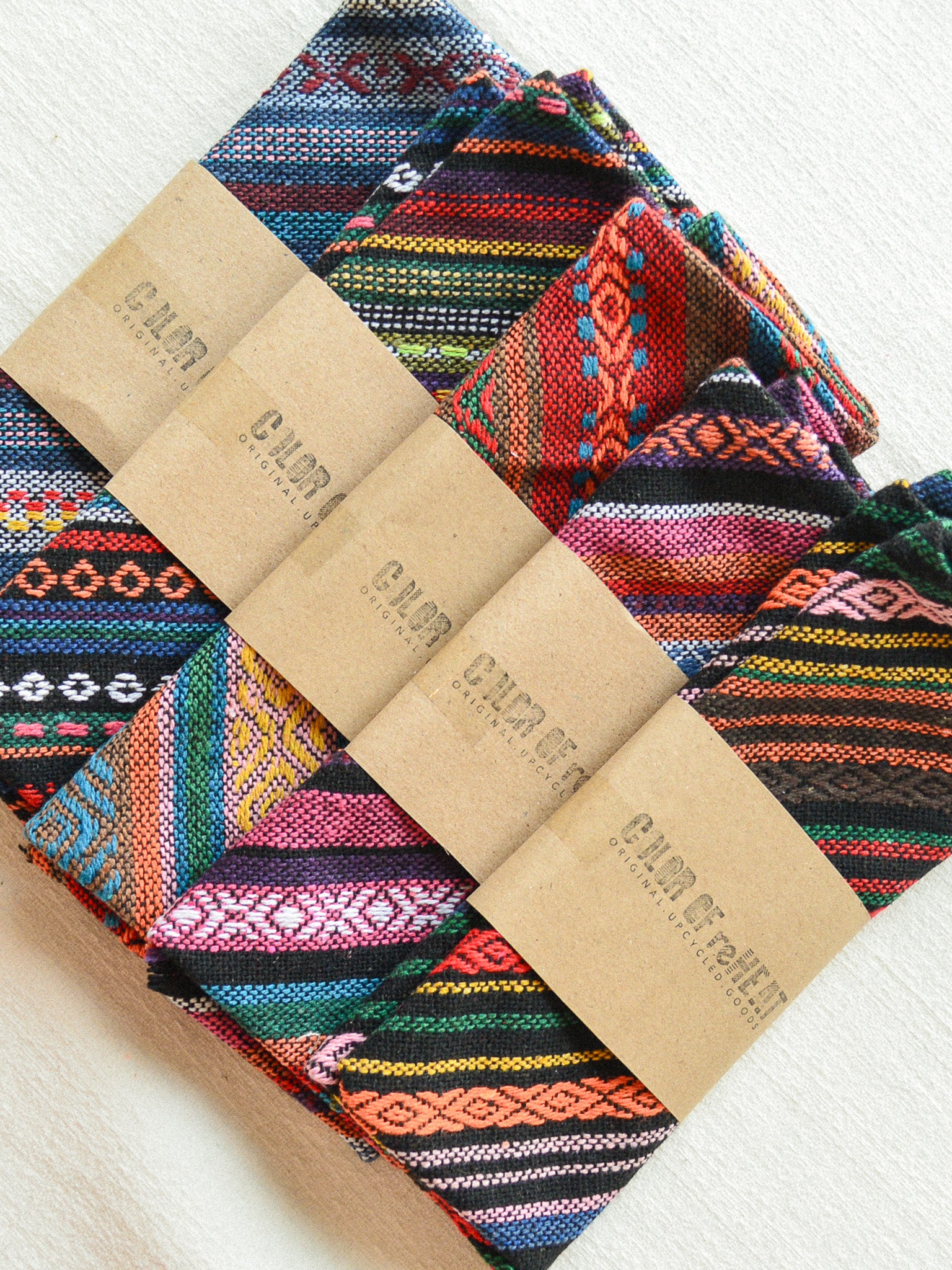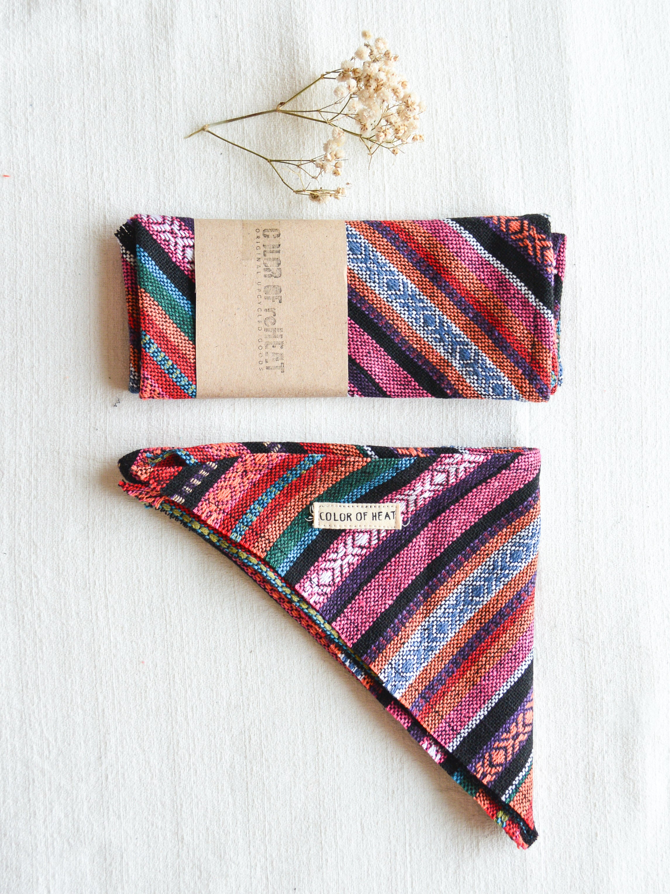We offer them in 2 shapes: triangle and square with 3 different fabric types: Festival Fabrics, Fine Fabrics, and Batik.